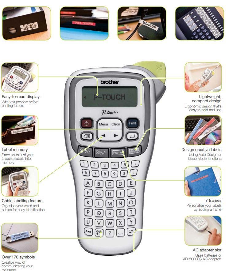 Increase your efficiency by ensuring items such as file folders, CD cases, shelving, filing cabinets and personal possessions are clearly identified with a Brother P-touch label. The compact handheld P-touch H105 is ideal for using around the home/office. With a wide variety of tape cassettes in various widths and colours you will find the P-touch H105 indispensable.