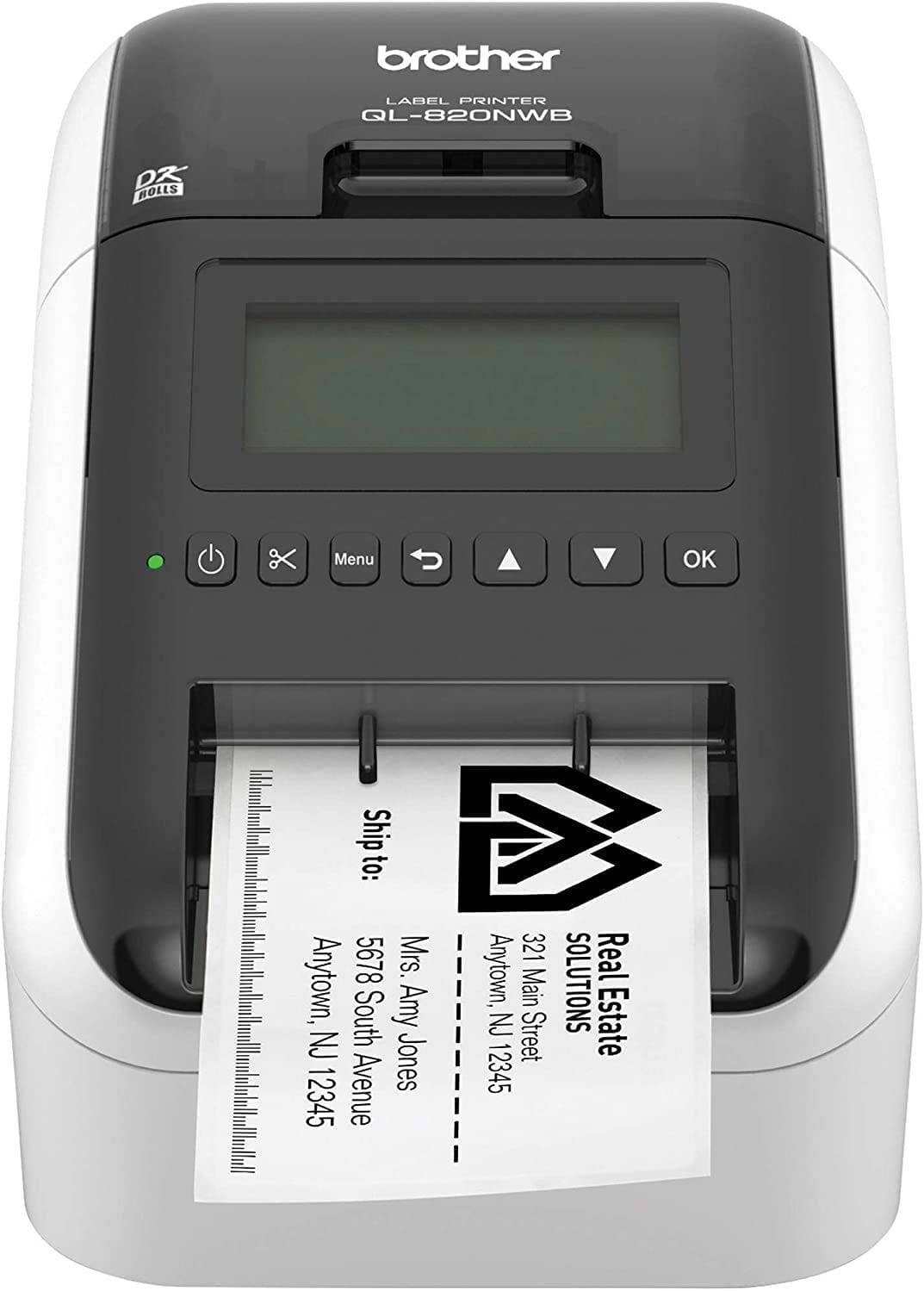 The Brother QL-820NWB offers flexible connectivity – Bluetooth® wireless technology, Ethernet and Wireless (802.11b/g/n) interfaces. Also equipped with a USB Host interface, the Brother QL-820NWB is well-suited for use with a peripheral such as a scanner. Create amazing Black/Red labels using DK-2251 or cost-effective, paper labels for packages, name badges, postage and more. Ultra-fast, printing up to 110 standard address labels per minute with black text at 300dpi. Create and print labels from your mobile device when connected to a wireless network via AirPrint® and Brother iPrint&Label. Using the free, Brother iPrint&Label app‡ with your Apple® iPhone®, iPad®, and iPod touch® or Android™ smartphones you can quickly access and print label templates – or create your own custom labels with graphics or photos. Easy to read Backlit Monochrome LCD screen allows for standalone use. Add an optional Li-ion battery for a complete mobile solution. Easy to integrate with free software development kits. Uses convenient, Brother genuine DK drop in labeling supplies. Needs no ink or toner. Windows and Mac® compatible.