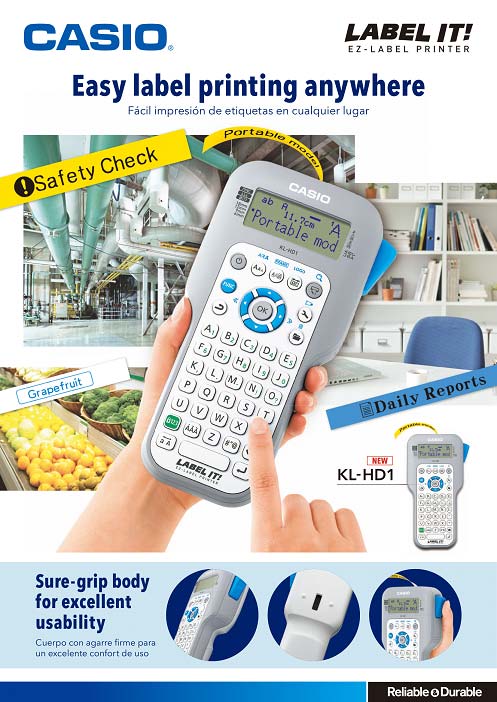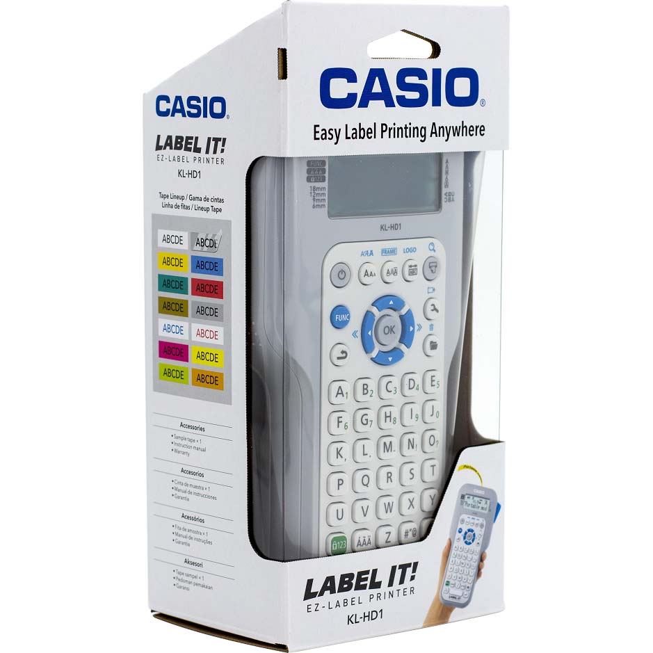 Model No : KL-HD1 • Label Printer • Operates on 6 x AA size Batteries (not included) • Dimensions (L x W x H) : 202mm x 112mm x 60mm • Weight : 340g • Accepts 18,12,9,6mm tape widths • 12mm print head/200 dpi resolution • Sure-grip body for excellent usability • 8-language message switching (English / Spanish / German / French / Italian / Portuguese / Swedish / Indonesian) • 60 Designed Logo printing • ABCD keyboard